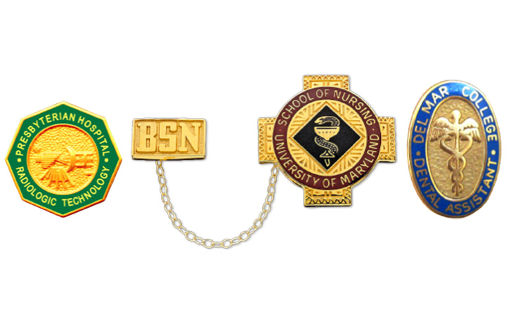 Earning your medical degree is a remarkable achievement, and it deserves to be honored with tradition. A medical pin is a time-honored symbol of your skill, dedication, and commitment to your profession. It represents pride in your training and will be worn throughout your career. Herff Jones medical pins feature quality craftsmanship, designed to your school’s unique specifications and are available in a variety of pin and guard metal selections.